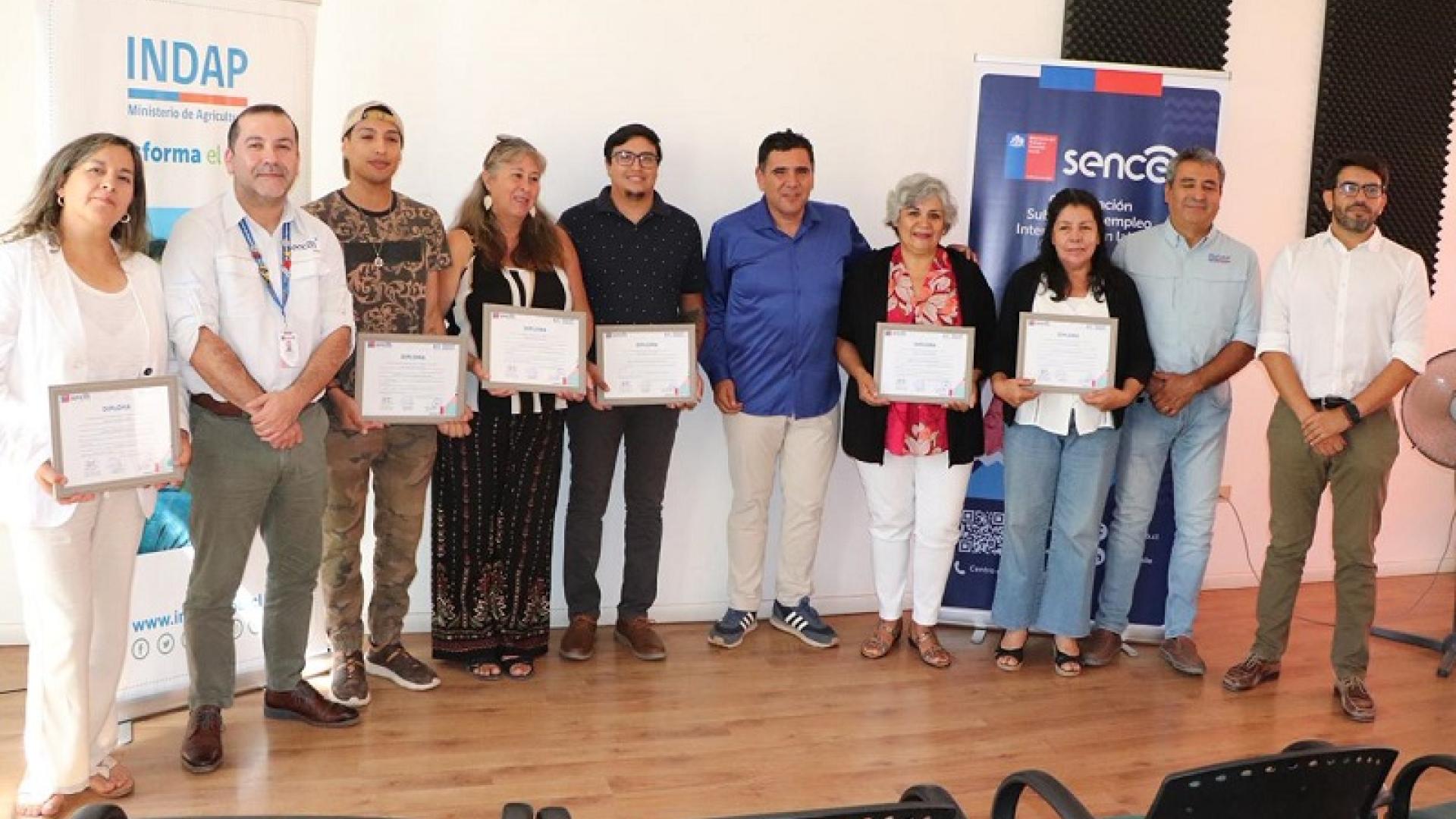 Dieciséis integrantes de la Agricultura Familiar Campesina e Indígena de Ovalle, Monte Patria y Río Hurtado participaron en el curso “Comercialización en Mercados Campesinos”, que se realizó en el marco del convenio entre el Instituto de Desarrollo Agropecuario (INDAP) y el Servicio Nacional de Capacitación y Empleo (Sence). La iniciativa les permitió adquirir conocimientos para aplicar en los espacios de venta permanente que mantiene la institución en las diversas comunas de la Región de Coquimbo